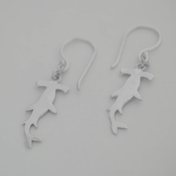 Beautiful hammerhead shark earrings for lovers of the ocean and its creatures. Made with the lost wax method of casting, the original shark was carved by hand like a tiny sculpture. After creating the mold, each pair of earrings is cast in solid .925 sterling silver before hand-finishing and polishing.