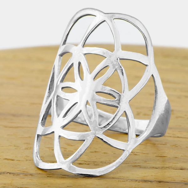 The design, as a seed, is full of potential for life and creation. It contains the blueprint for all life and symbolizes divine design. The band is contoured for a comfortable fit.